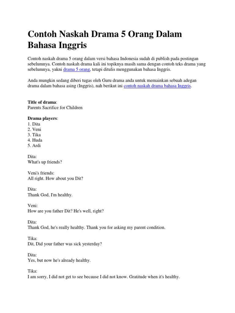 Contoh Naskah Drama 5 Orang Dalam Bahasa Inggris