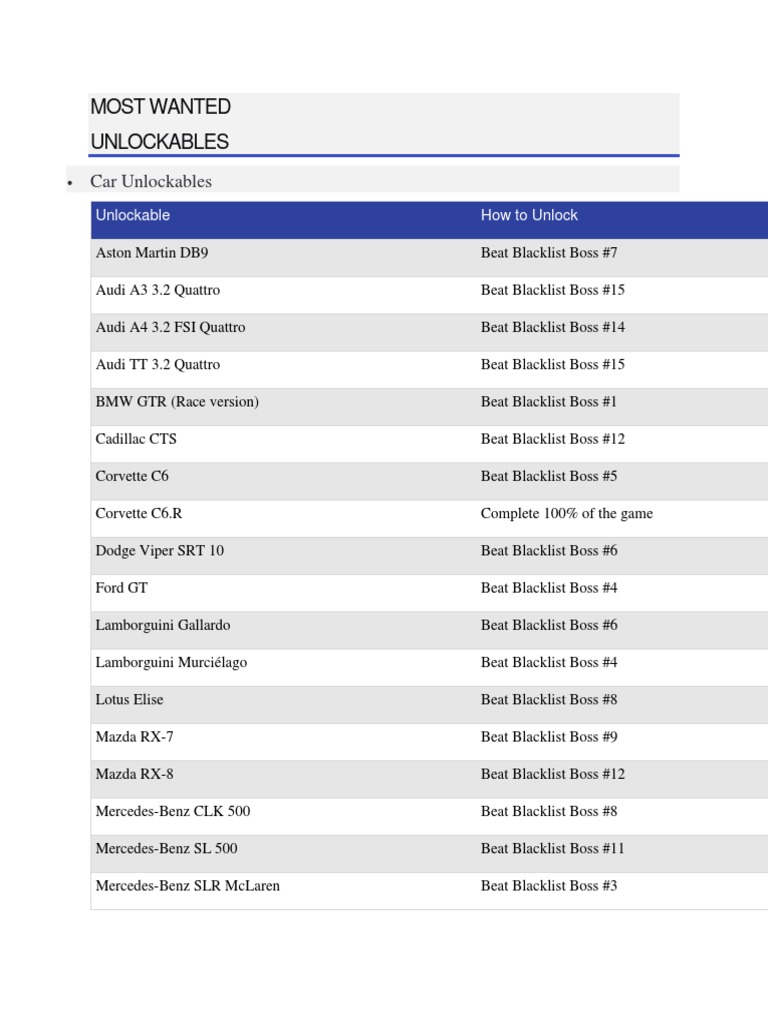 Most Wanted Unlockables