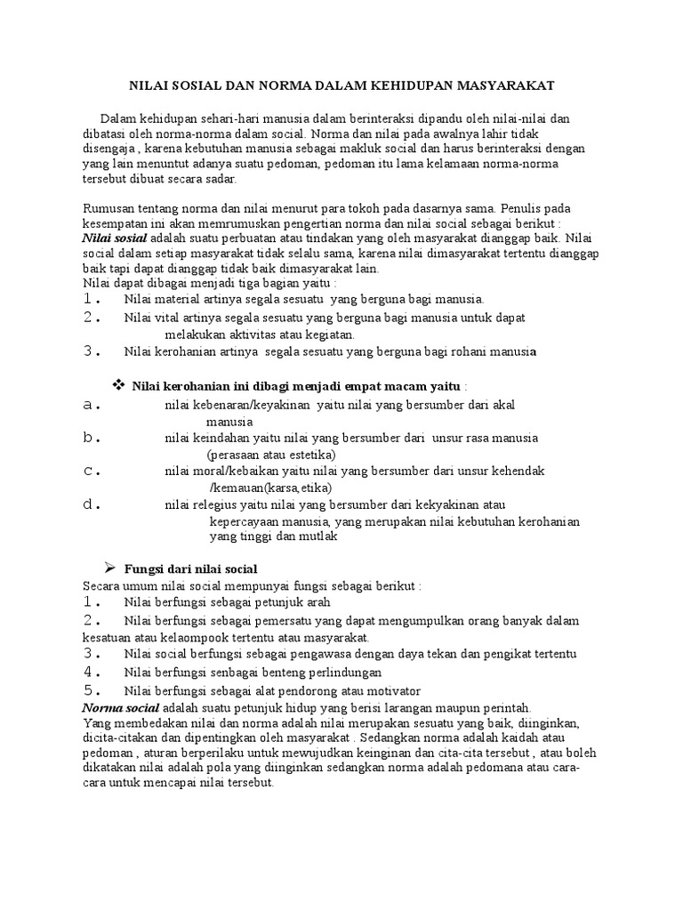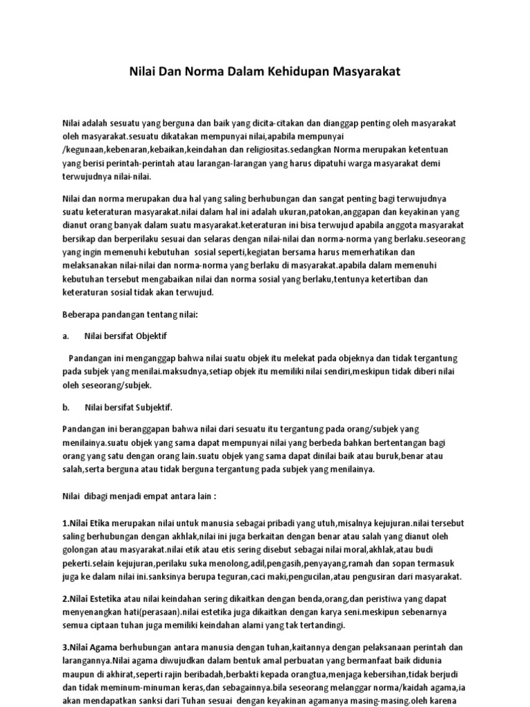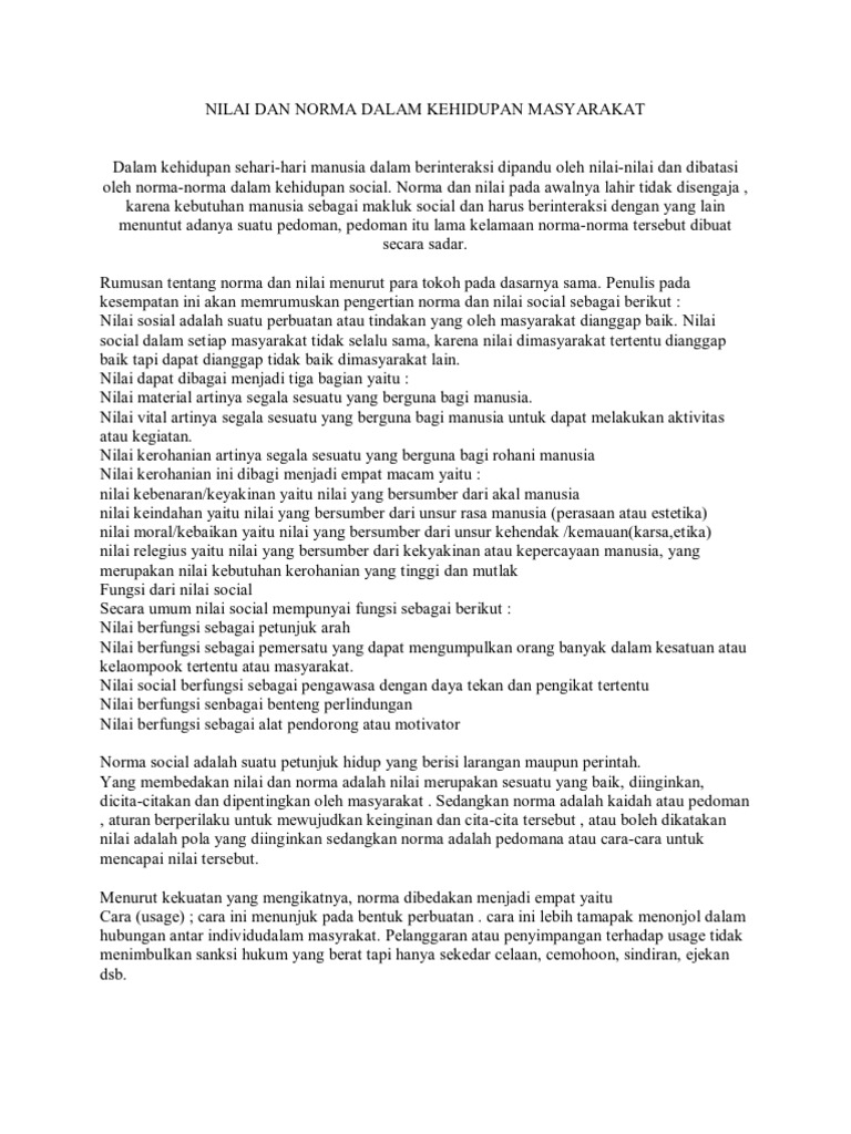 DOC) NILAI DAN NORMA YANG BERLAKU DI MASYARAKAT | Arum echot …