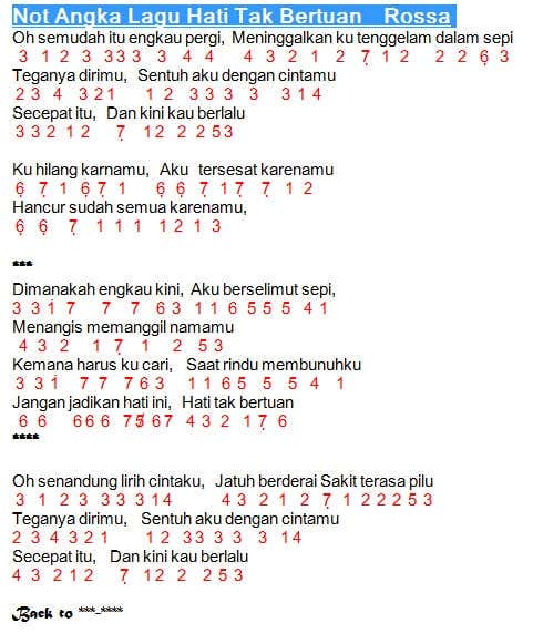 Not Angka Lagu Not Angka Pianika Lagu Rossa Bicara Pada Bintang …