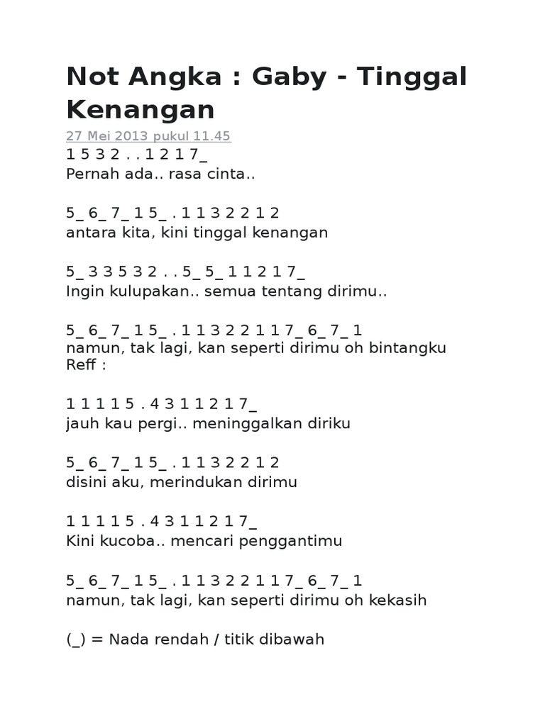 Not Lagu Tinggal Kenangan Gaby - Kumpulan Not Lagu