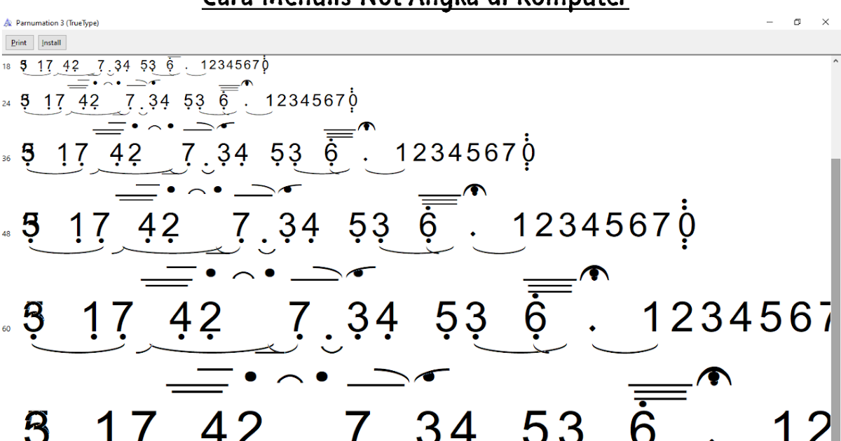 Cara Menulis Not Angka Lagu di Komputer Menggunakan Font Parnumation