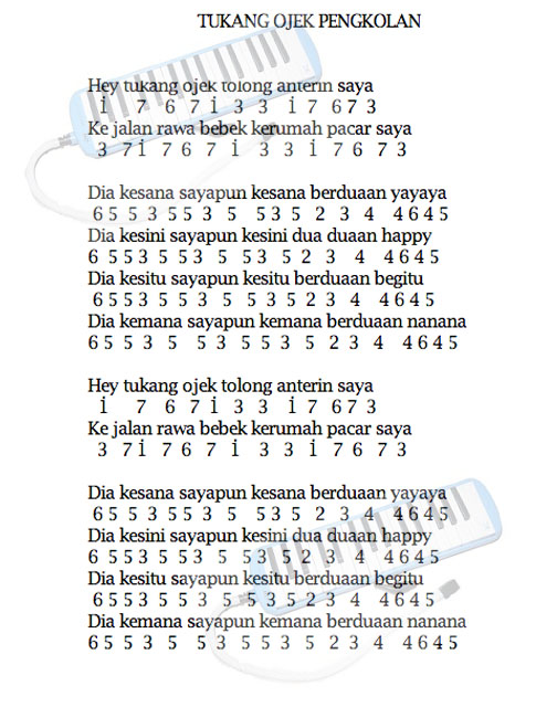 Not Pianika Lagu Tukang Ojek - Kumpulan Not Lagu
