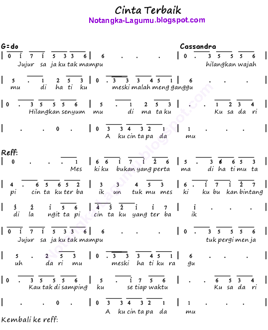 not angka lagu cassandra cinta terbaik | Lhia’s Music Notes