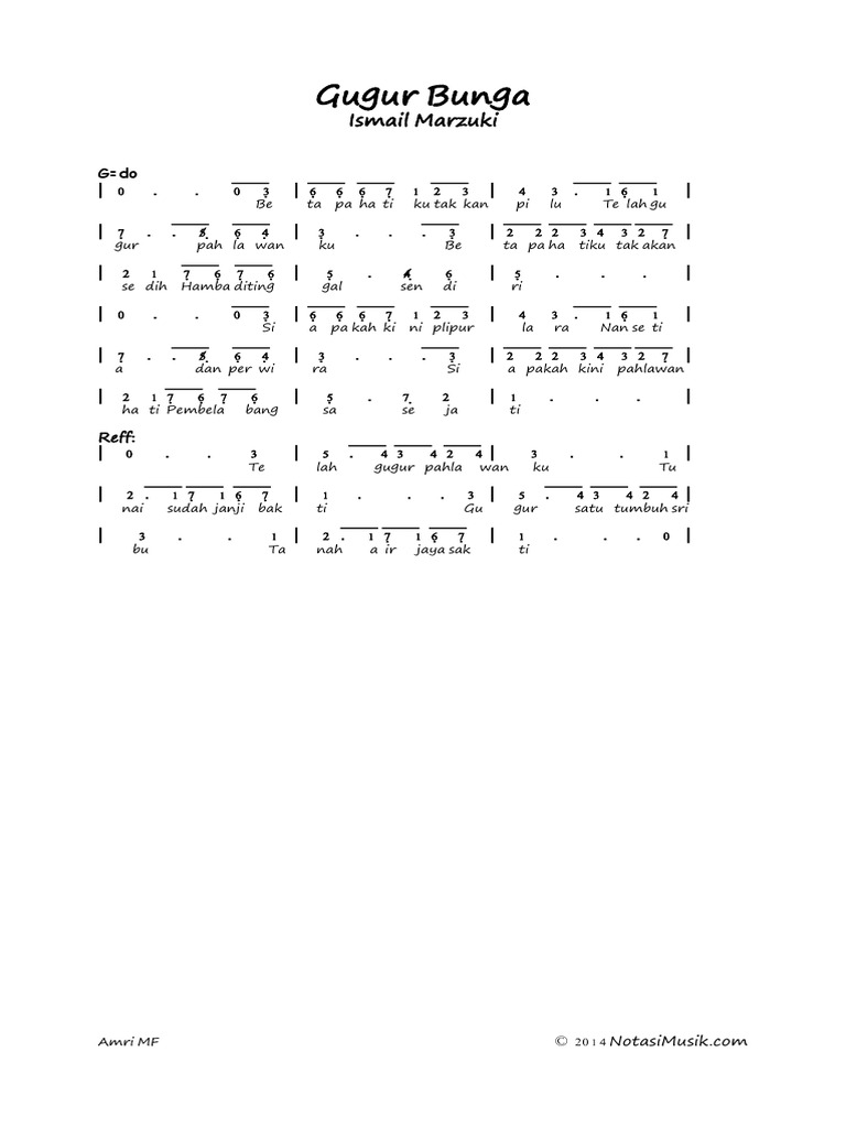 Gambar Not Angka Lagu Gugur Bunga - Koleksi Gambar Bunga