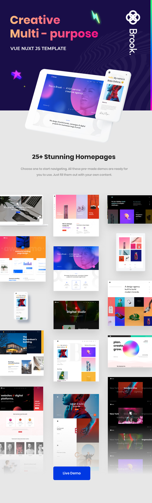 Brook - Creative Multipurpose Vue Nuxt JS Template by BootXperts | ThemeForest