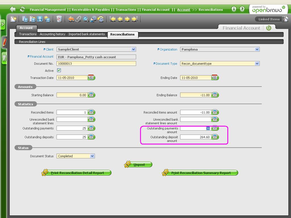 0013295: Outstanding payments amount and outstanding deposit …