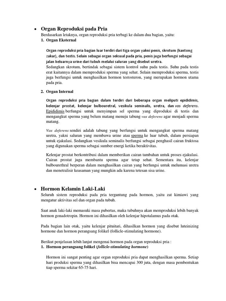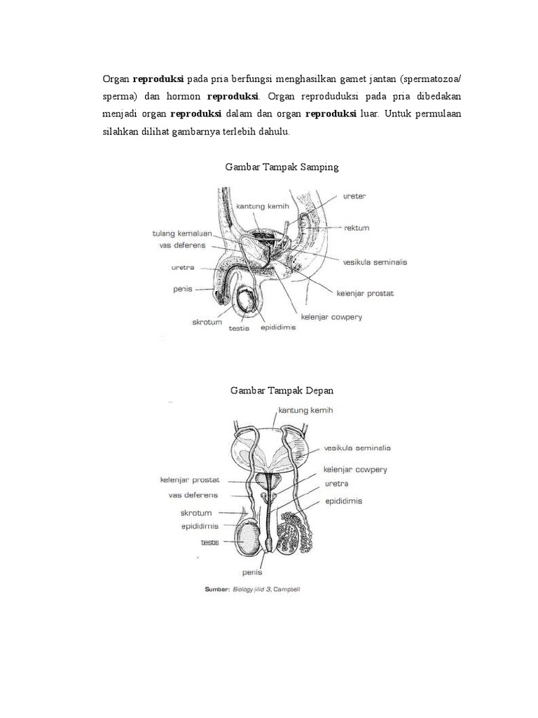 Organ Reproduksi Pada Pria Berfungsi Menghasilkan Gamet Jantan