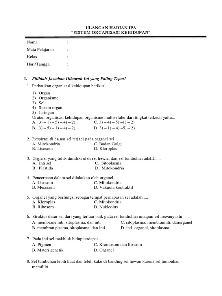 Soal dan jawaban sel hewan dan tumbuhan (Biologi) | Usaha321.net