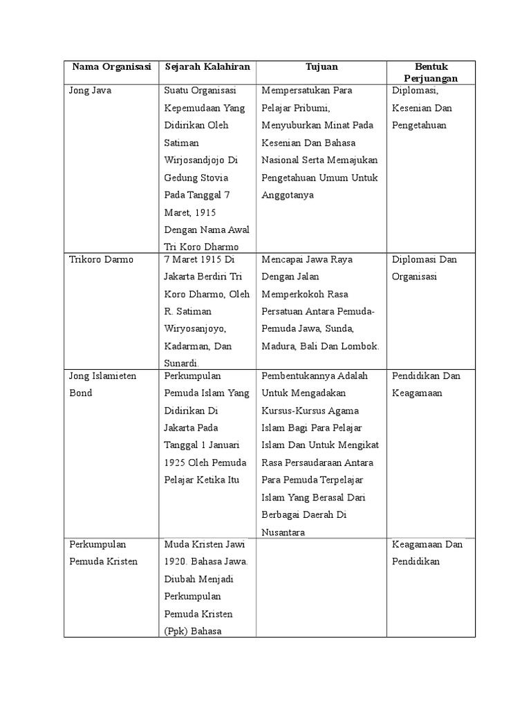 Nama Organisasi Sejarah Kalahiran Tujuan Bentuk Perjuangan