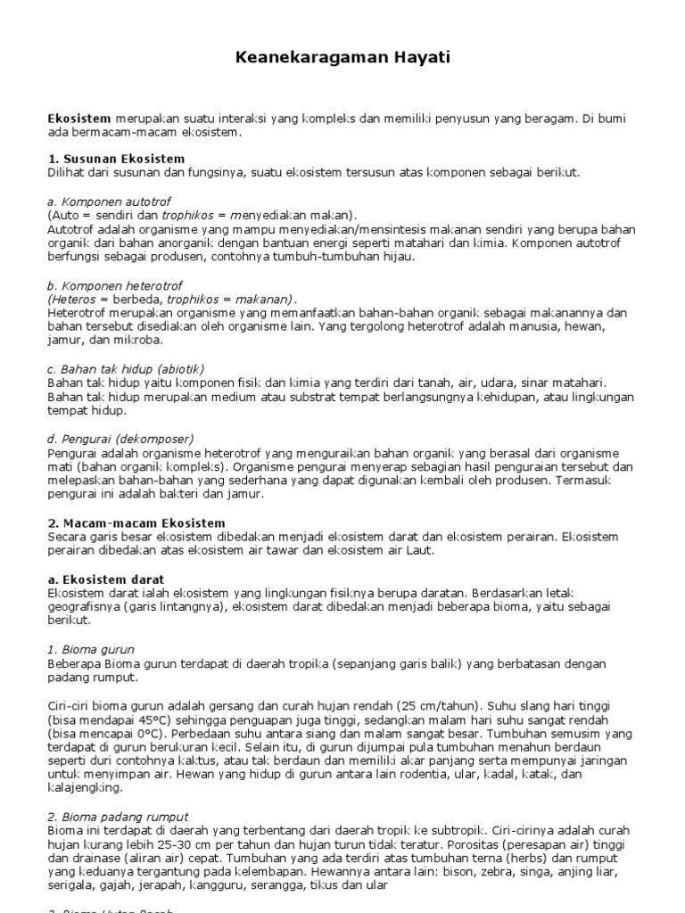 Keanekaragaman Hayati: Ekosistem merupakan suatu interaksi …