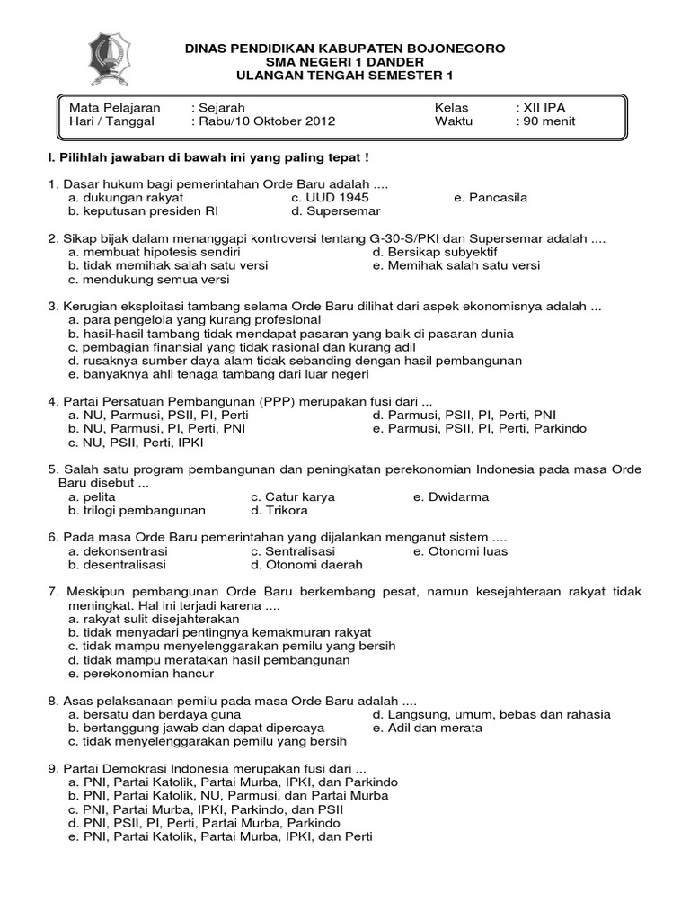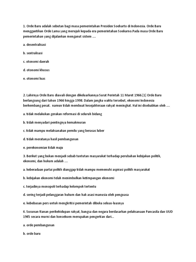 15 Soal Latihan Masa Orde Baru Dan Orde Lama Beserta Pembahasannya
