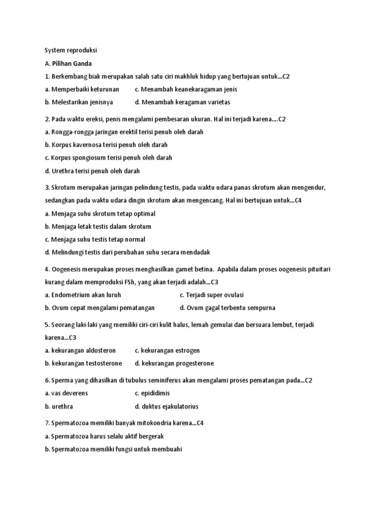 360048141-Soal-danjawaban-sistem-reproduksi-docx.docx - System reproduksi A Pilihan Ganda 1 Berkembang biak merupakan salah satu ciri makhluk hidup yang | Course Hero