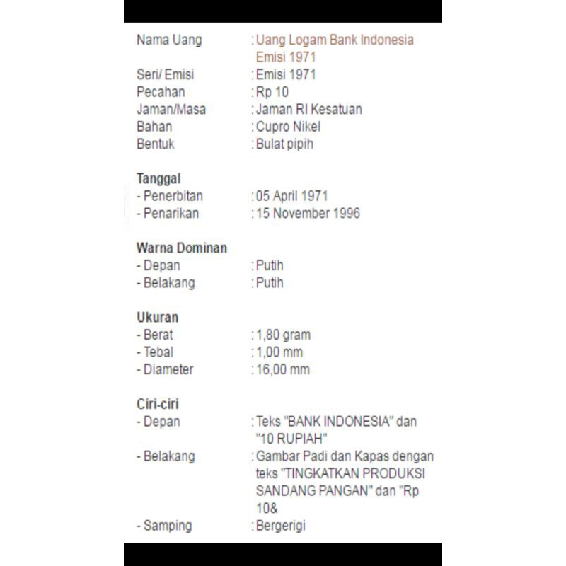 UANG KOIN 10 RUPIAH 1971 PADI DAN KAPAS 1 KEPING BIJI | Shopee Indonesia