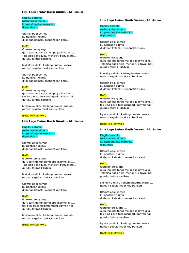 √ Lirik Lagu Terima Kasih Guruku ( Guruku Tersayang) Afi Junior …