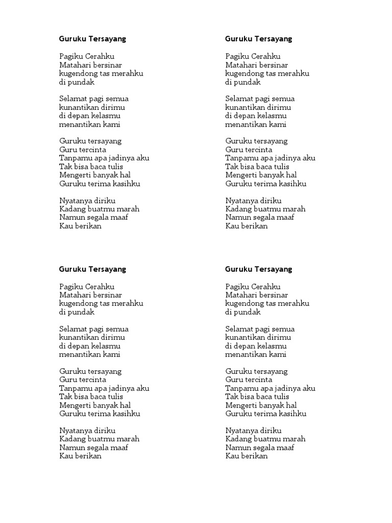 Lirik Lagu Guruku Tersayang & Ibu Guru Kami - [PDF Document]