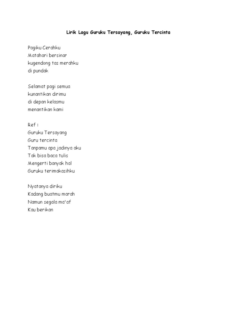 lirik lagu guruku tersayang | Lagu, Lirik lagu, Guru