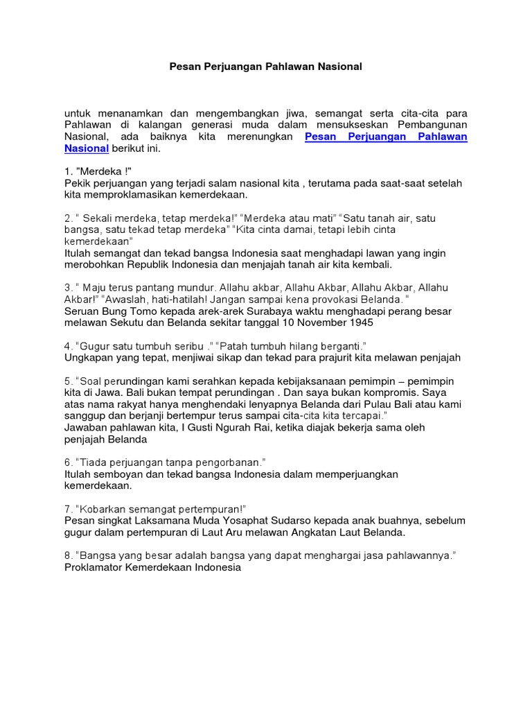 Pesan Perjuangan Pahlawan Nasional
