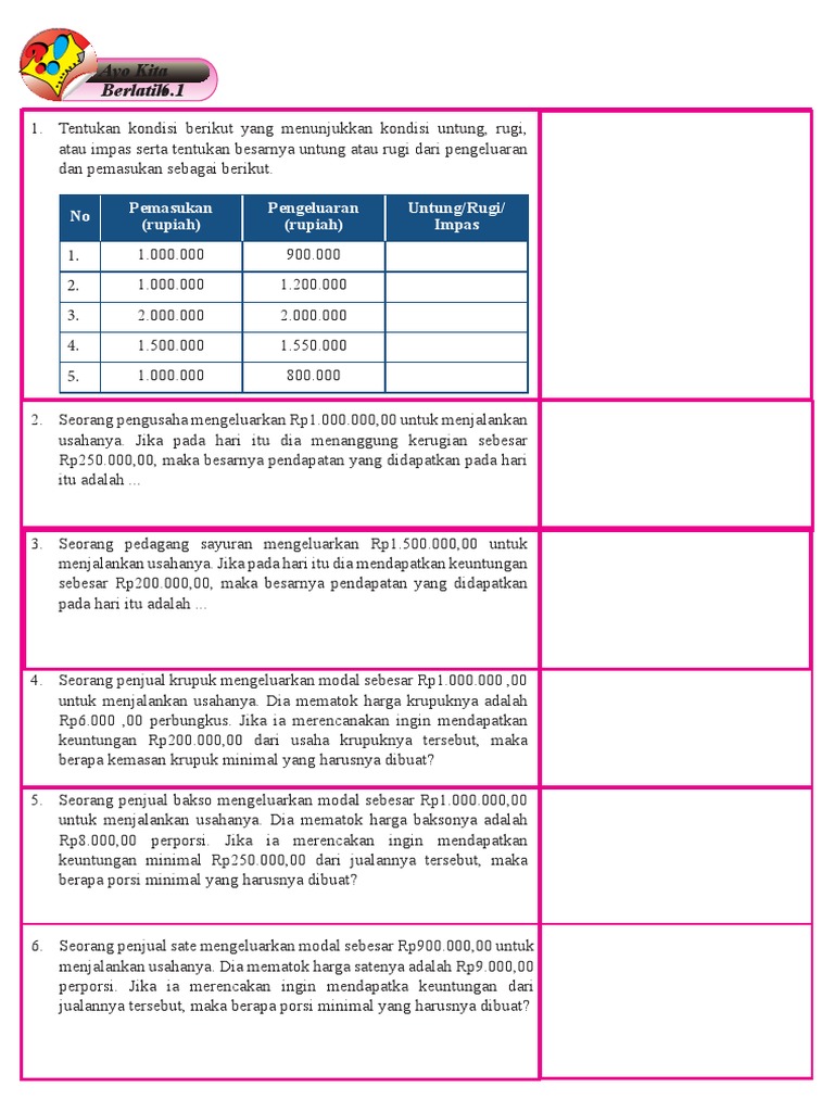 Soal dan Jawaban Ayo Kita berlatih 6.2 Aritmatika Sosial Kelas 7 - M4thguru