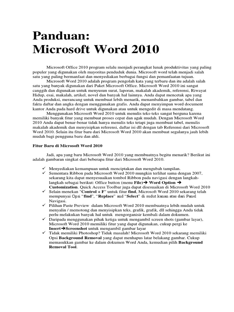 Panduan Belajar Microsoft Word 2010 Pdf - Cara Mengajarku