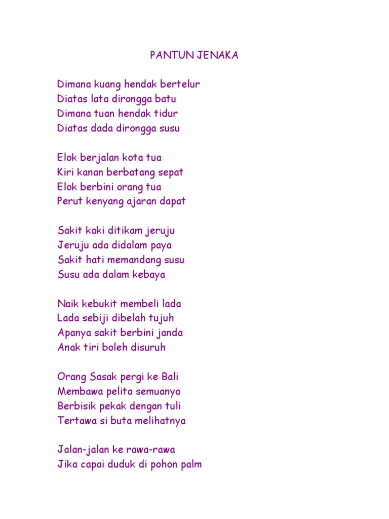 Kumpulan Contoh Pantun Jenaka Dan Maknanya - PergiBaca