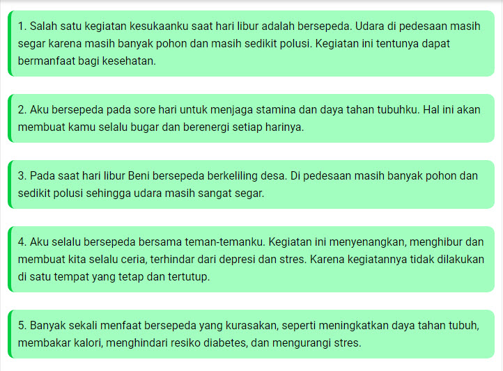 Kembangkan ide ide pokok berikut menjadi sebuah paragraf Bersepeda …