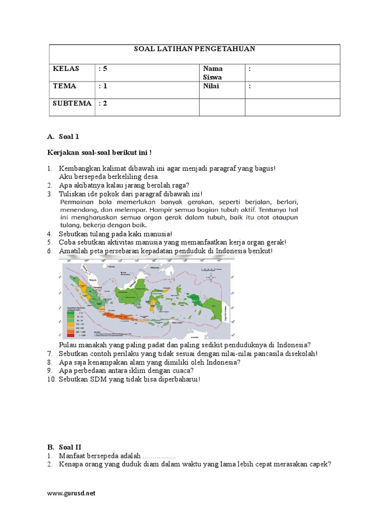 Lengkap - 20+ Contoh Soal untuk kelas 5 SD/MI Tema 1 Subtema 2 …