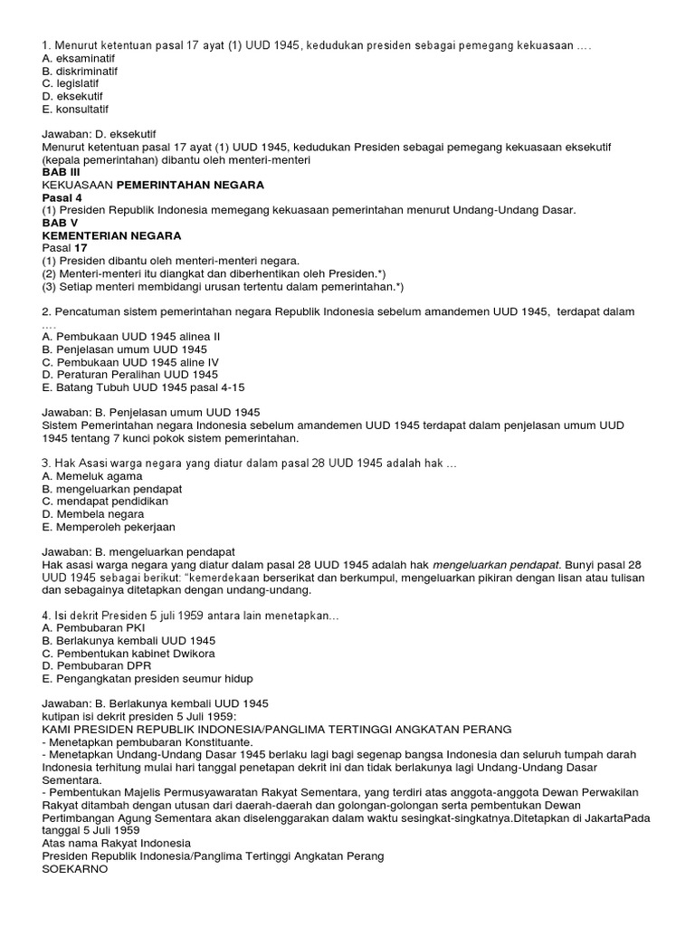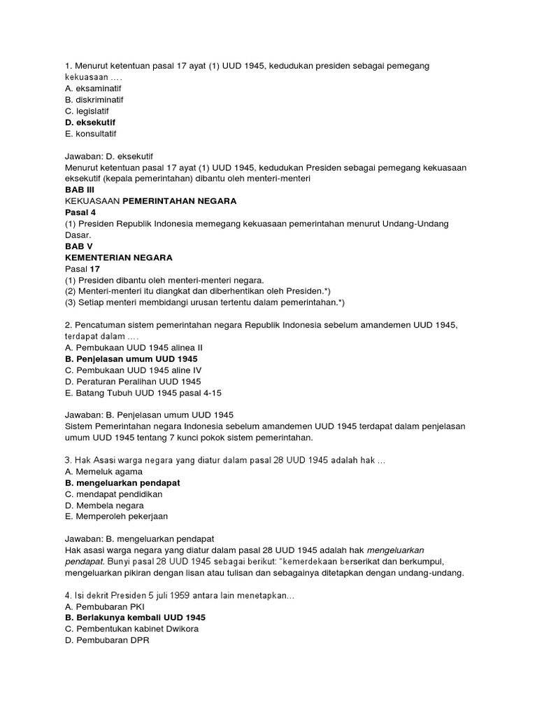 Kedudukan presiden dalam pasal 17 ayat 1 UUD 1945 - Brainly.co.id