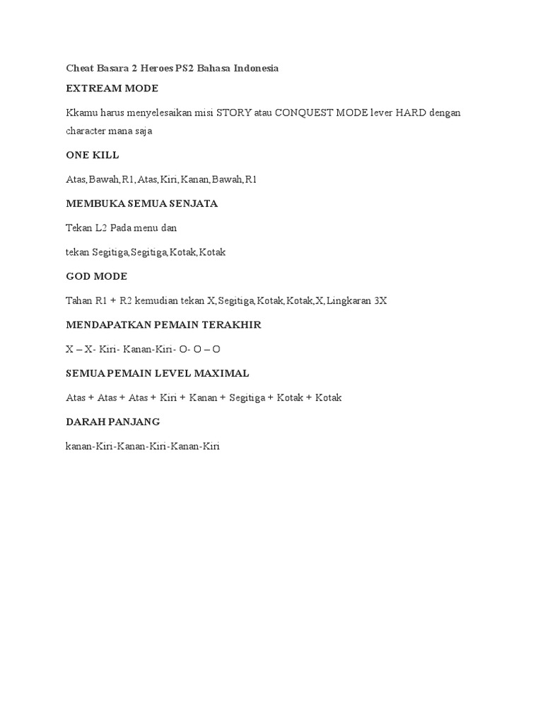 Cheat Kode Basara 2 Heroes PS2 gone cah mboh Lengkap - [PDF Document]