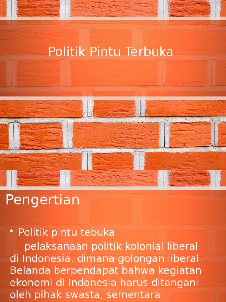 Jelaskan yang dimaksud dengan -politik pintu terbuka -politik elis …