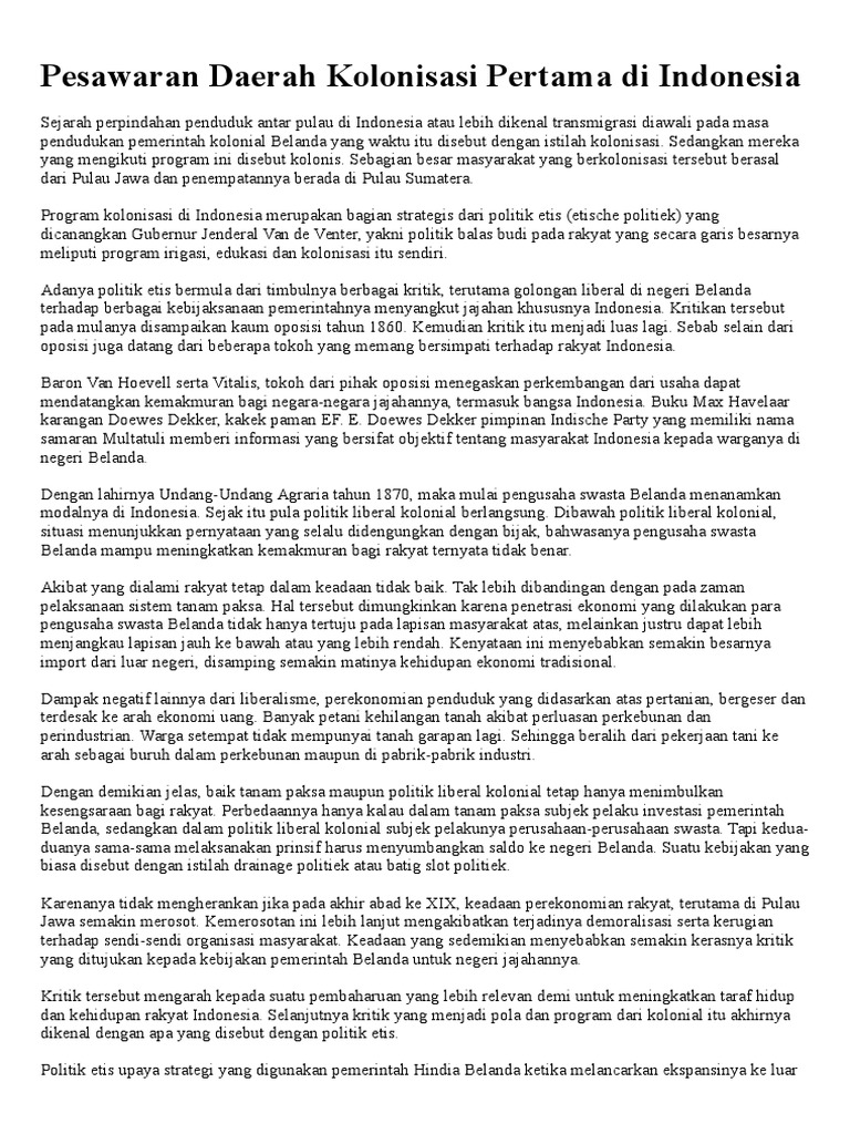 Kolonisasi Pemerintah Kolonial Belanda | Gudang Sejarah Indonesia
