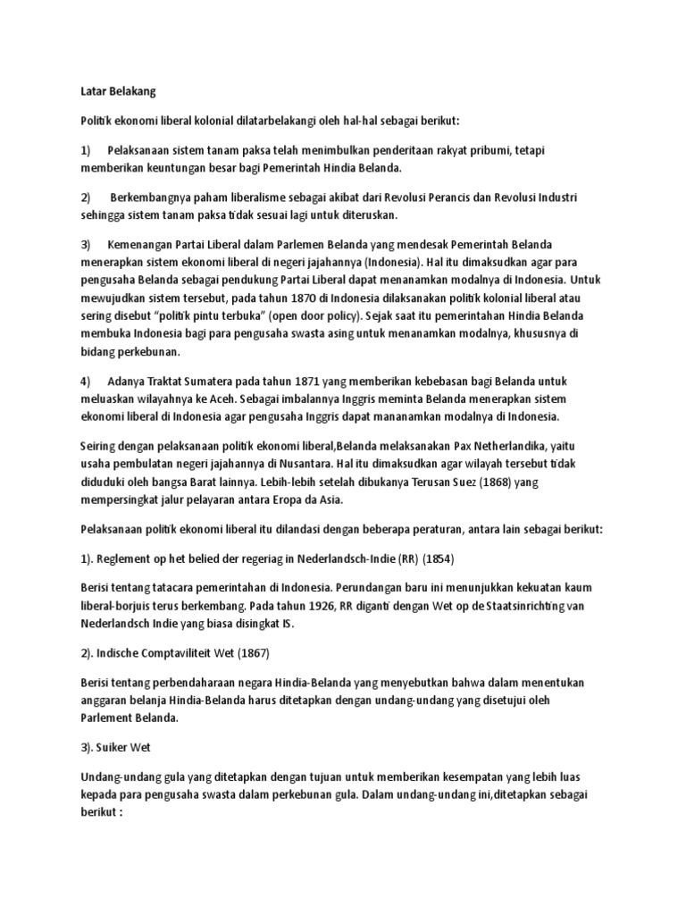 Sistem Politik Ekonomi Liberal Belanda Di Indonesia - Idsejarah
