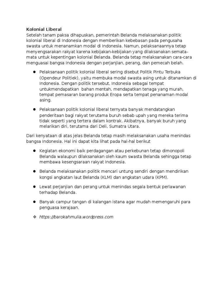 Sebutkan Akibat Pelaksanaan Politik Liberal Bagi Rakyat Indonesia …