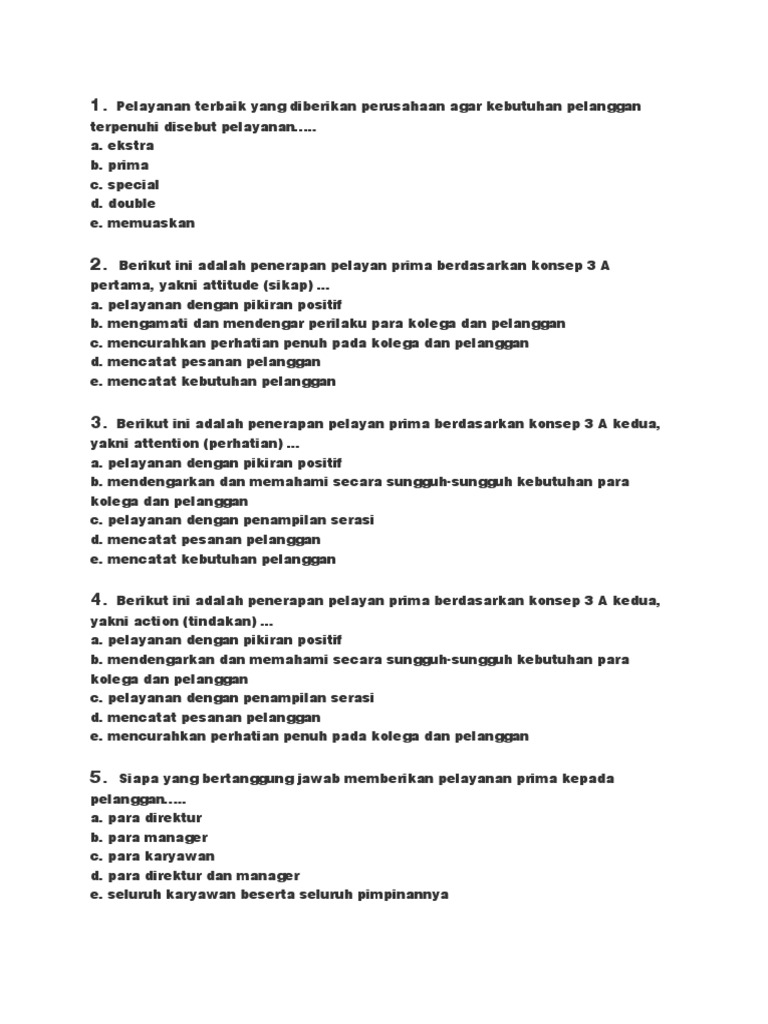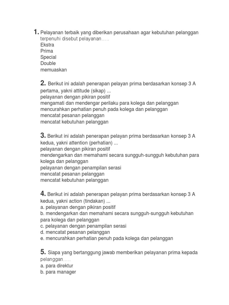 60 Butir Contoh Soal Memberikan Pelayanan Kepada Pelanggan …