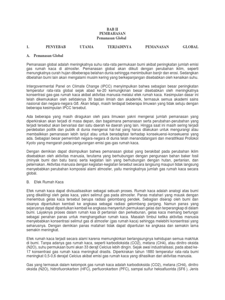 Bab Ii Pembahasan Pemanasan Global 1. Penyebab Utama …