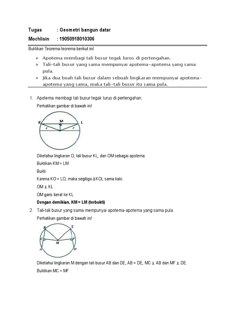 Tugas: Geometri bangun datar Mochlisin: 19050918010306: 1. Apotema …