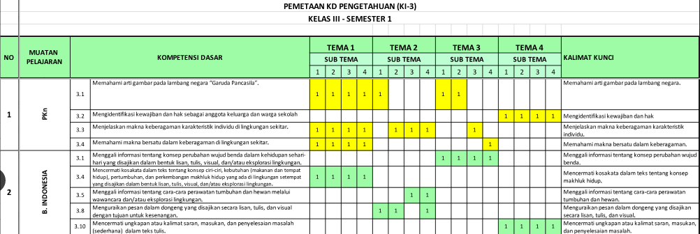Pemetaan KD Kelas 3 K13 Semester 1 Dan 2 Revisi 2020/2021