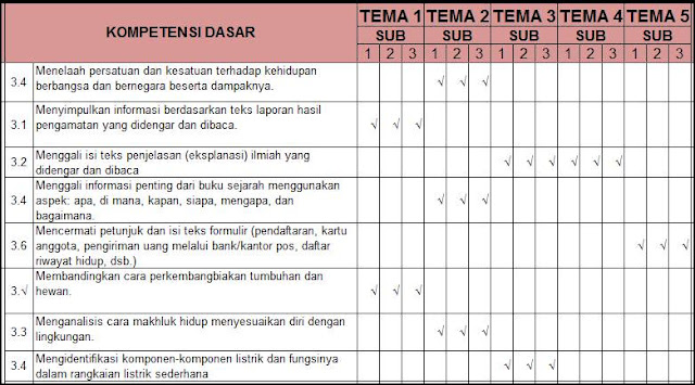 Pemetaan KD Kurikulum 2013 SD Lengkap Tahun 2018/2019 - Lima Klik