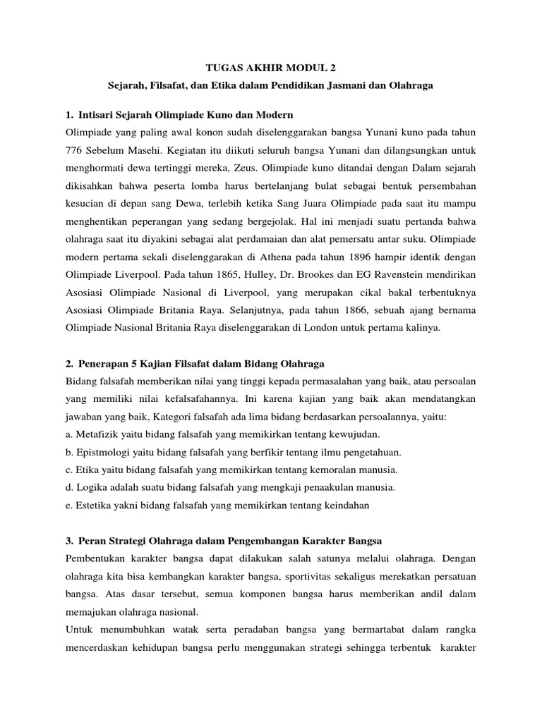 Tugas Akhir Modul 2 Sejarah, Filsafat, dan Etika dalam Pendidikan Jasmani dan Olahraga