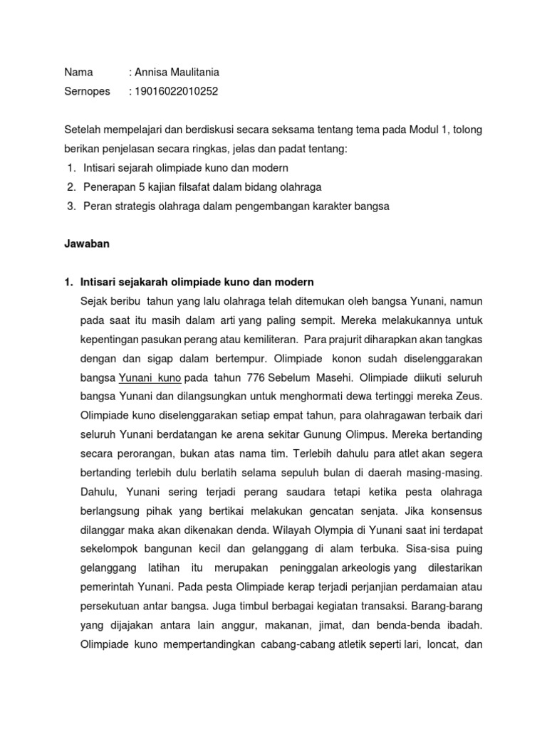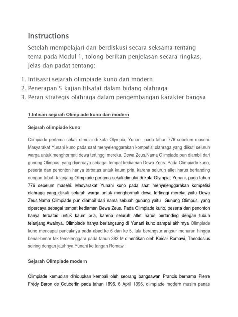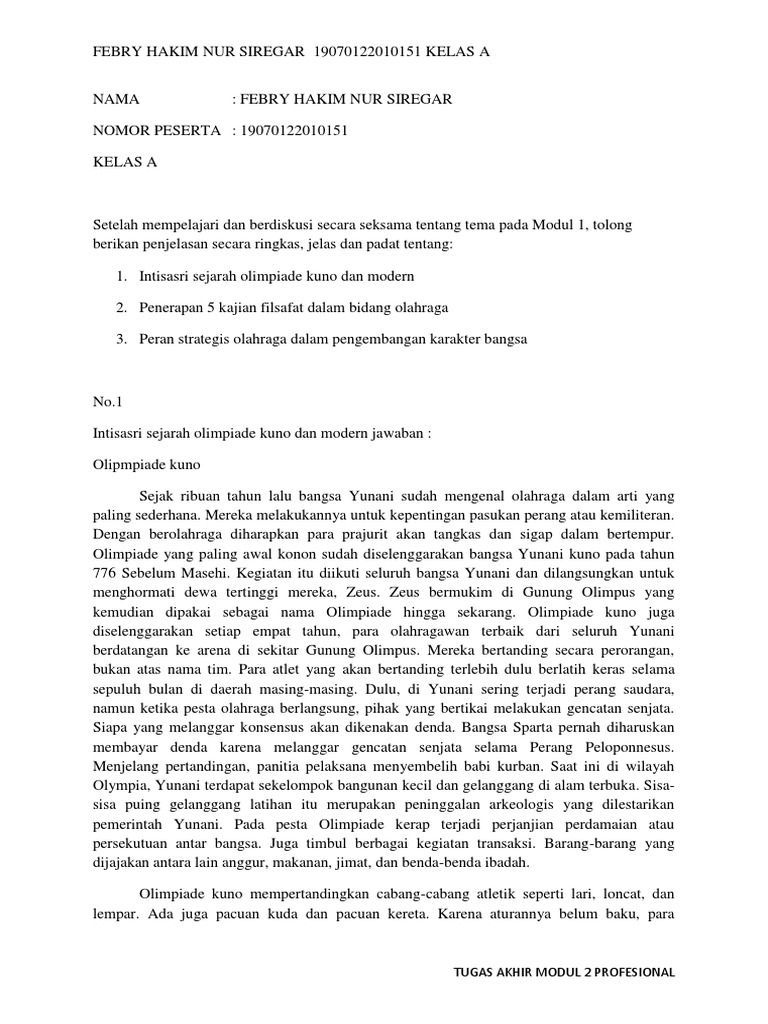 TA M2 Profesional.docx - Nama Eko Bima Nugraha Kelas B Tugas Akhir Modul 2 Profesional 1 Intisasri sejarah olimpiade kuno dan modern Olimpiade sendiri | Course Hero