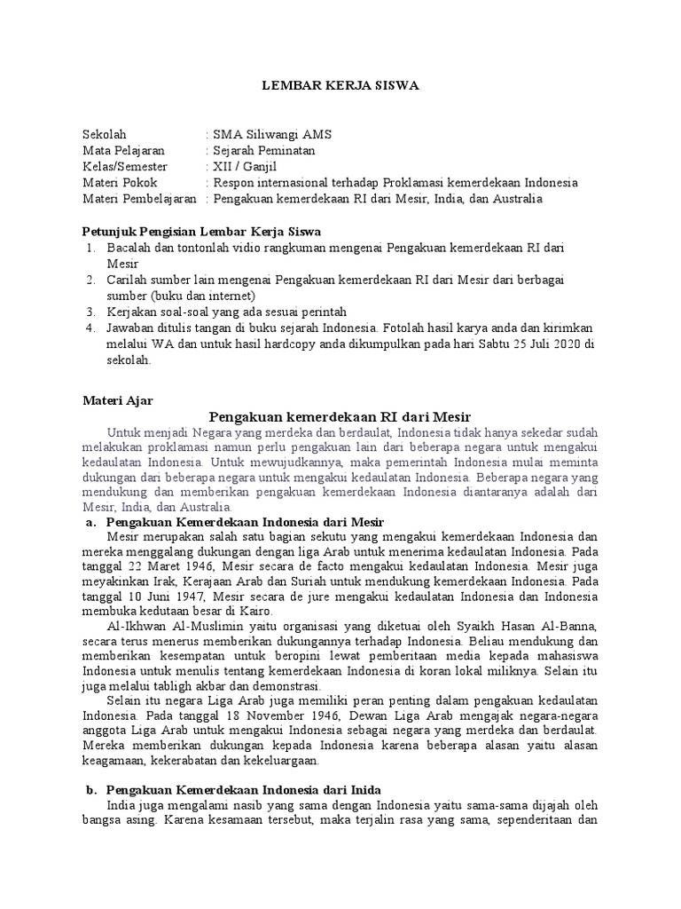 LKS XII Sejarah Pemintan 1 - Pengakuan kemerdekaan RI dari Mesir, India, dan Australia.docx