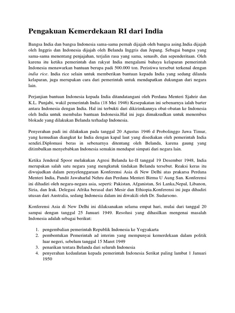 Bagaimana Pengakuan Kemerdekaan dan Kedaulatan dari India Kepada Indonesia? | Sejarah Kelas 12