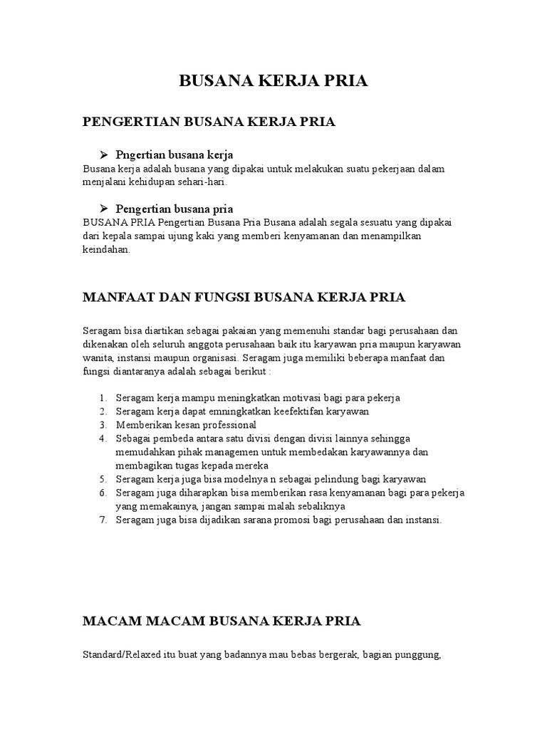 Pengertian Busana Kerja Pria
