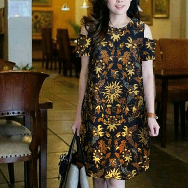 jual dress batik sabrina off shoulder rok atasan blouse busana kerja baju wanita ootd fashion girls supplier murah surabaya olshop trusted reseller welcome dropship, Olshop Fashion, Olshop Wanita di Carousell