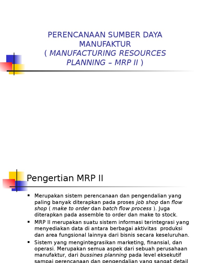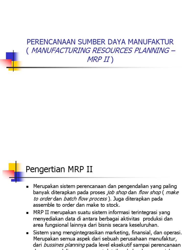 PERENCANAAN SUMBER DAYA MANUFAKTUR ( .Pengertian MRP II Merupakan …