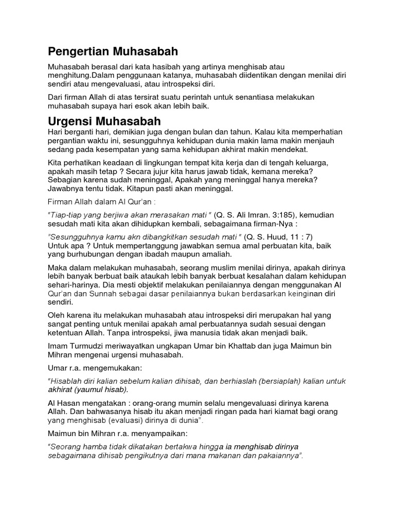 Pengertian Muhasabah - Pengertian Komplit