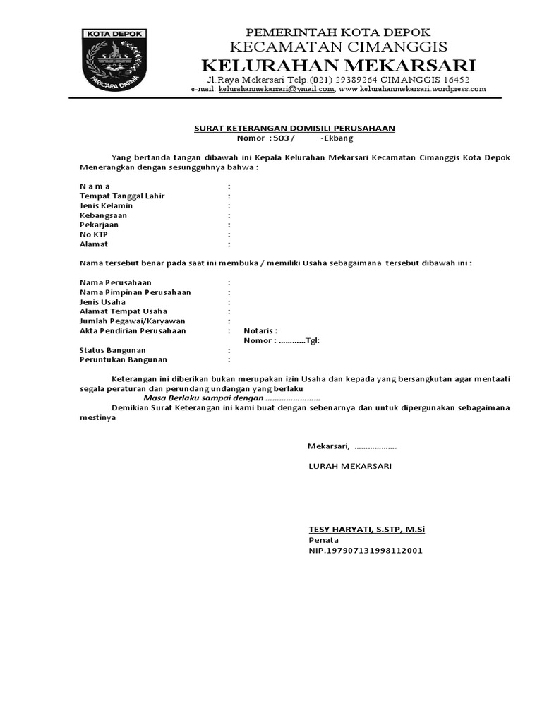 13+ Contoh Surat Keterangan Domisili Sementara, Perusahaan & Usaha | The Book