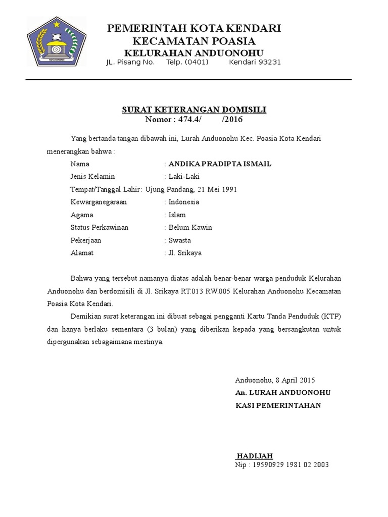 Contoh Surat Keterangan Domisili Yang Benar – Edukasi.Lif.co.id