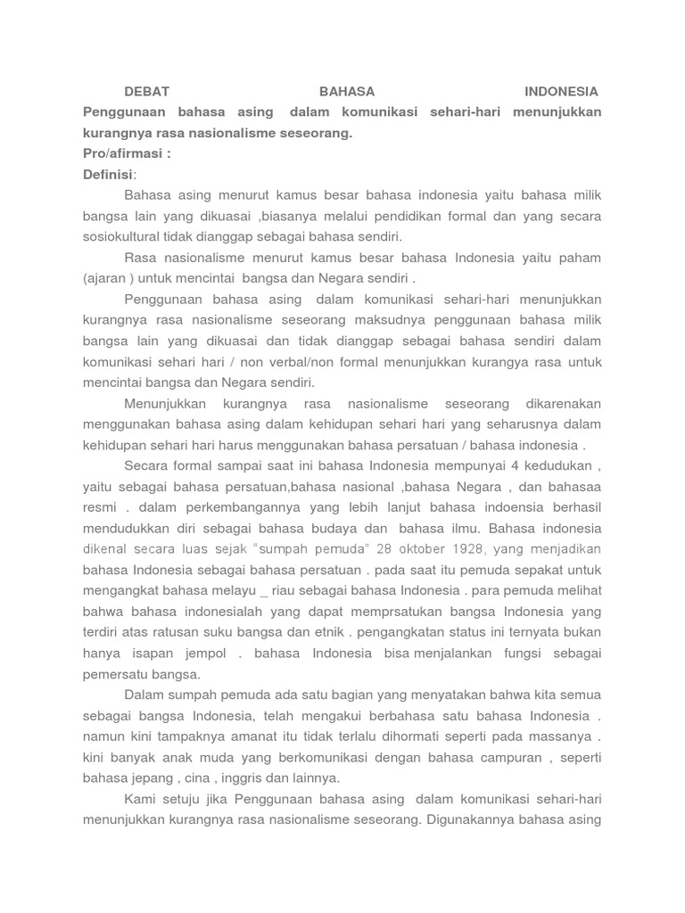 contoh debat penggunaan bahasa asing dalam komunikasi sehari-hari …