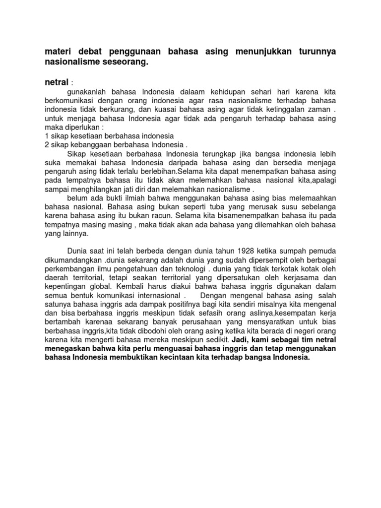 Pro dan Kontra Bahasa Asing Terhadap Nasionalisme berikut Argumentasi
